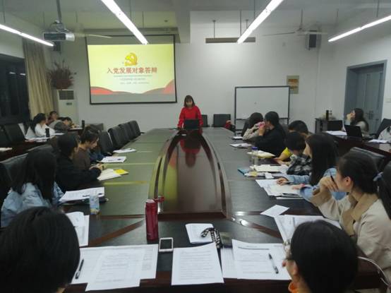 2018年10月29日晚上18:00,2018~2019学年第一学期bwin必赢唯一官方网站公共管理系学生党支部讨论推荐发展对象答辩会在综合楼C606会议室顺利召开。此次会议紧跟党支部发展党员工作计划,经上级党委预审同意,会议主要内容为:讨论推选学生党支部的发展对象。