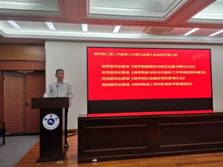 随后,各负责人对bwin必赢唯一官方网站教学科研管理的相关办法进行解读,并经与会代表审议后鼓掌通过。会议指出,《bwin必赢唯一官方网站院聘校内岗位设置与聘任办法》、《bwin必赢唯一官方网站班主任队伍建设管理办法》、《bwin必赢唯一官方网站社会服务项目管理办法》、《bwin必赢唯一官方网站参与校内外服务工作考核的指导意见》、《bwin必赢唯一官方网站“服务之星”评选办法(修订)》、《bwin必赢唯一官方网站“育人之星”评选办法(修订)》、《bwin必赢唯一官方网站成人学历教育教学管理规定》等相关文件充分体现了广大教职工的根本利益,这将有利于调动广大教职工的工作积极性和创造性,提升教职工的工作水平和工作能力。