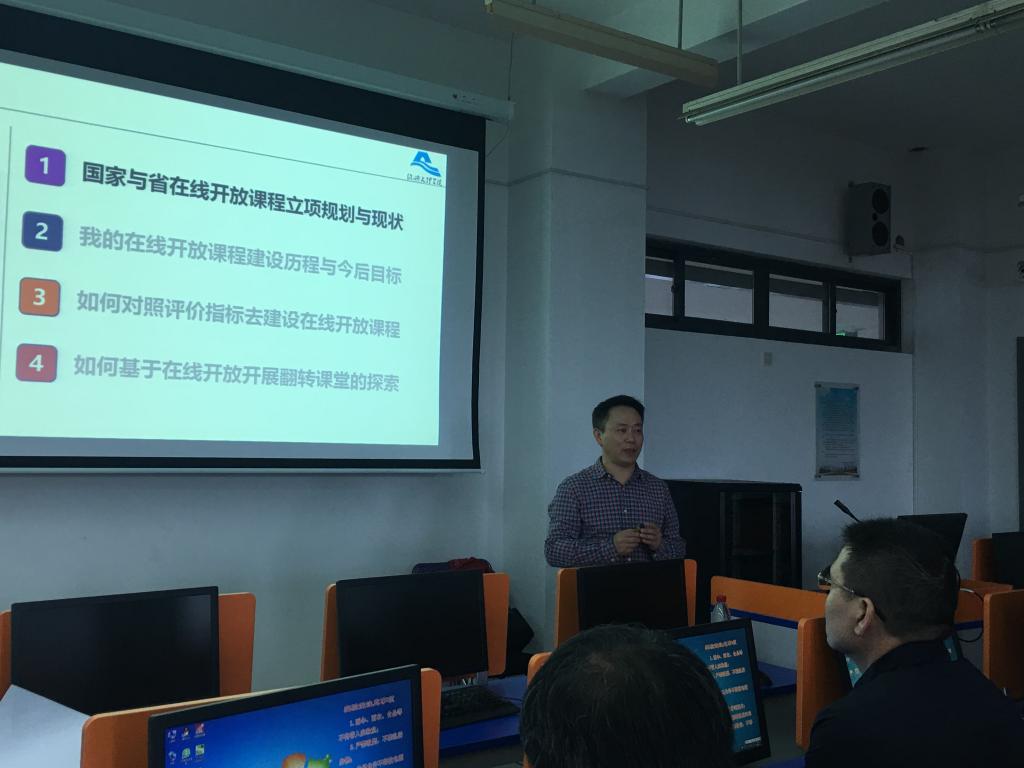 2018年10月31日,必赢官网教发分中心邀请赵伟强老师做“基于在线开放课程开展翻转课堂教学”的培训讲座。赵伟强老师是第二批省级在线开放精品课程主持人,学校翻转课堂教学沙龙主持人,在在线开放课程建设方面有丰富的经验和独到的见解。此次讲座上,赵老师主要从国家与省在线开放课程立项情况、我的在线开放课程建设历程、如何对照指标建设课程、如何基于在线开放开展翻转课堂的探索等四个方面介绍了自己在课程建设方面的感悟和体会。