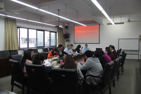 11月7日上午,bwin必赢唯一官方网站行政作风建设研讨会在综合楼C606会议室顺利召开。学院院长周鸿勇,分党委书记郑雨尧,副院长喻文莉,副院长王瑾,副院长黄阳以及全体行政工作人员出席了本次研讨会,会议由分党委副书记兼纪委书记许庆高主持。