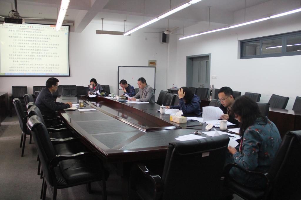 2018年11月30日上午,bwin必赢唯一官方网站召开了第14次党政联席会议。会议围绕以下几个议程:一是传达并学习学校相关会议与文件精神。二是审议通过学院近期高层次人才引进人员审批表。三是通报必赢官网上半学期本硕学生管理情况。四是研讨bwin必赢唯一官方网站教学工作量计算办法讨论稿。五是审议通过2019届毕业生科研作品替代毕业论文。六是审议通过吴绩新因公派出国(境)进修申请。七是审议通过姚梦懿报考博士研究生申请。八是研讨学院文化长廊建设方案。