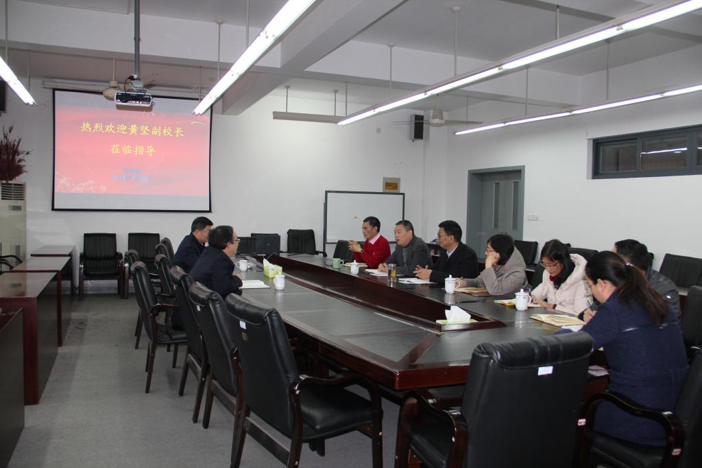 黄校长先是深入课堂听课,与师生亲切交谈,师生精神饱满,教学秩序井然。随后,与学院领导班子成员进行座谈。周鸿勇院长向黄校长汇报了学院寒假与开学相关工作,以及2019年重点工作,其他班子成员结合自己的分管工作作了汇报。