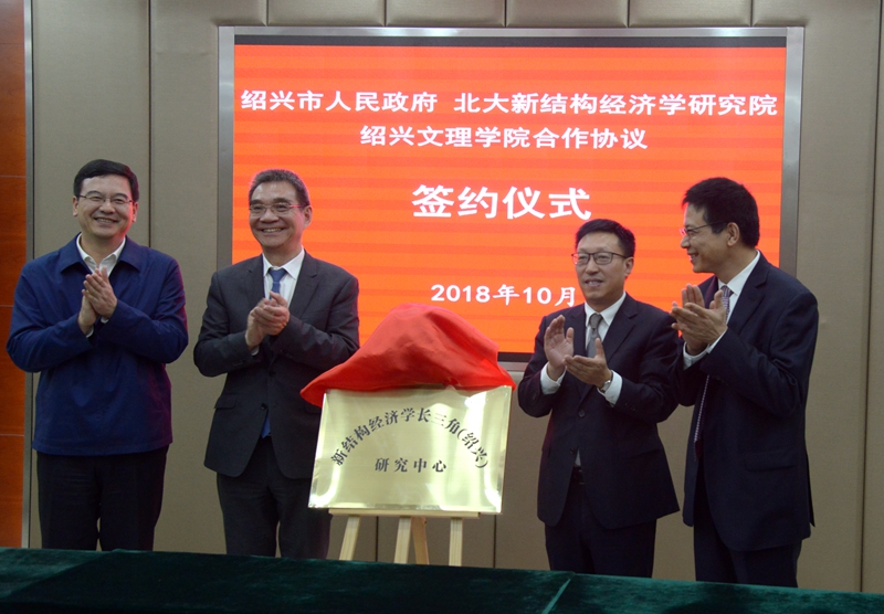 10月29日,在2018绍兴“名士之乡”人才峰会上,绍兴市人民政府、北京大学新结构经济学研究院和我校正式签订三方合作协议,共建新结构经济学长三角(绍兴)研究中心。