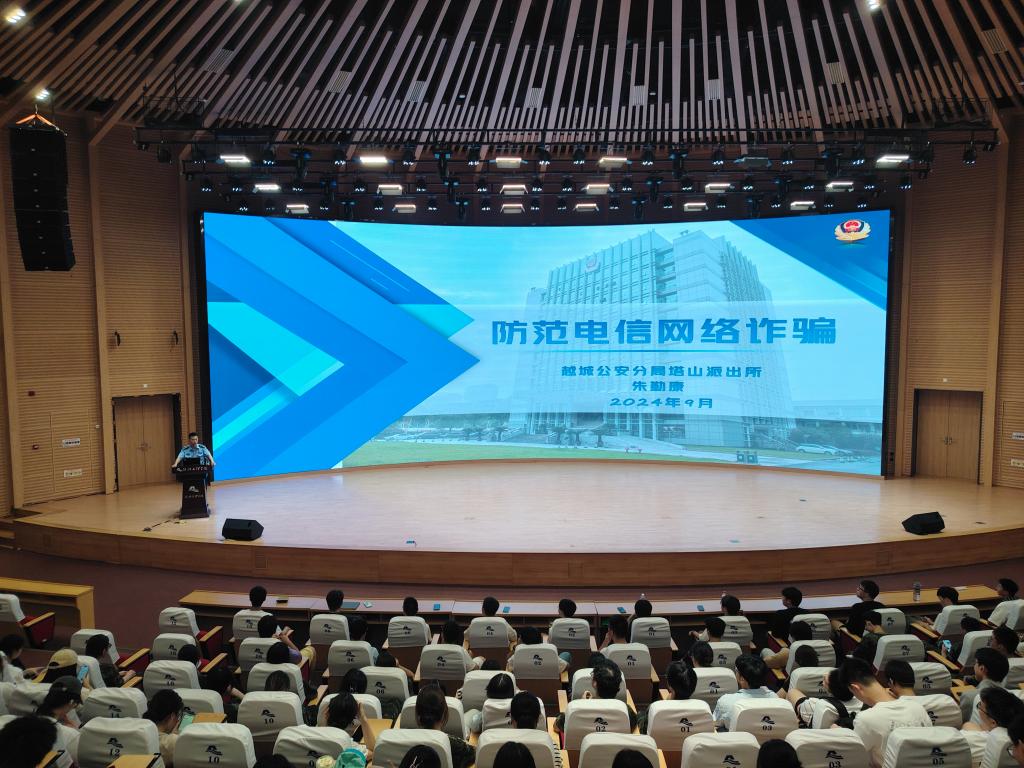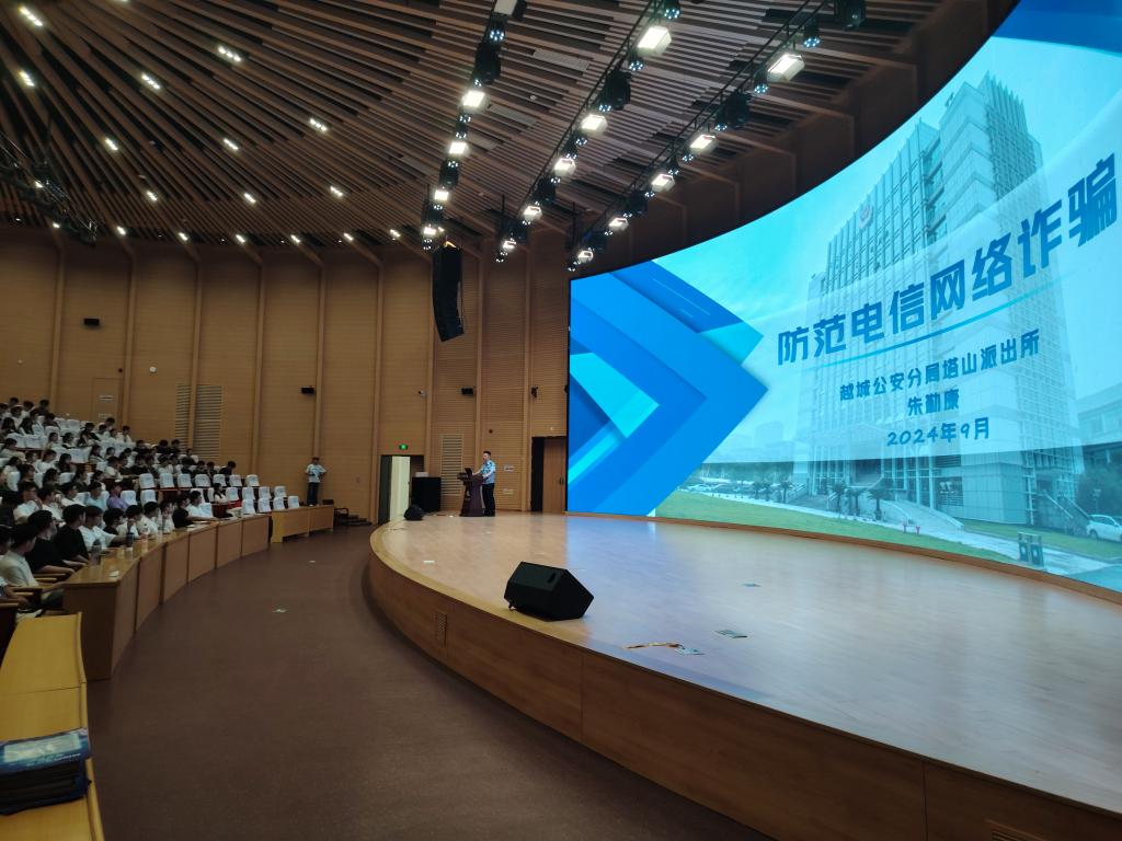 为增强2024级新生的反诈意识,提升防诈能力,维护校园安全稳定,9月7日晚,在风则江大讲堂,学院邀请越城公安分局塔山派出所副所长朱勤康与学院2024级新生携手开展防范电信网络诈骗宣讲教育活动,开启反诈第一课。